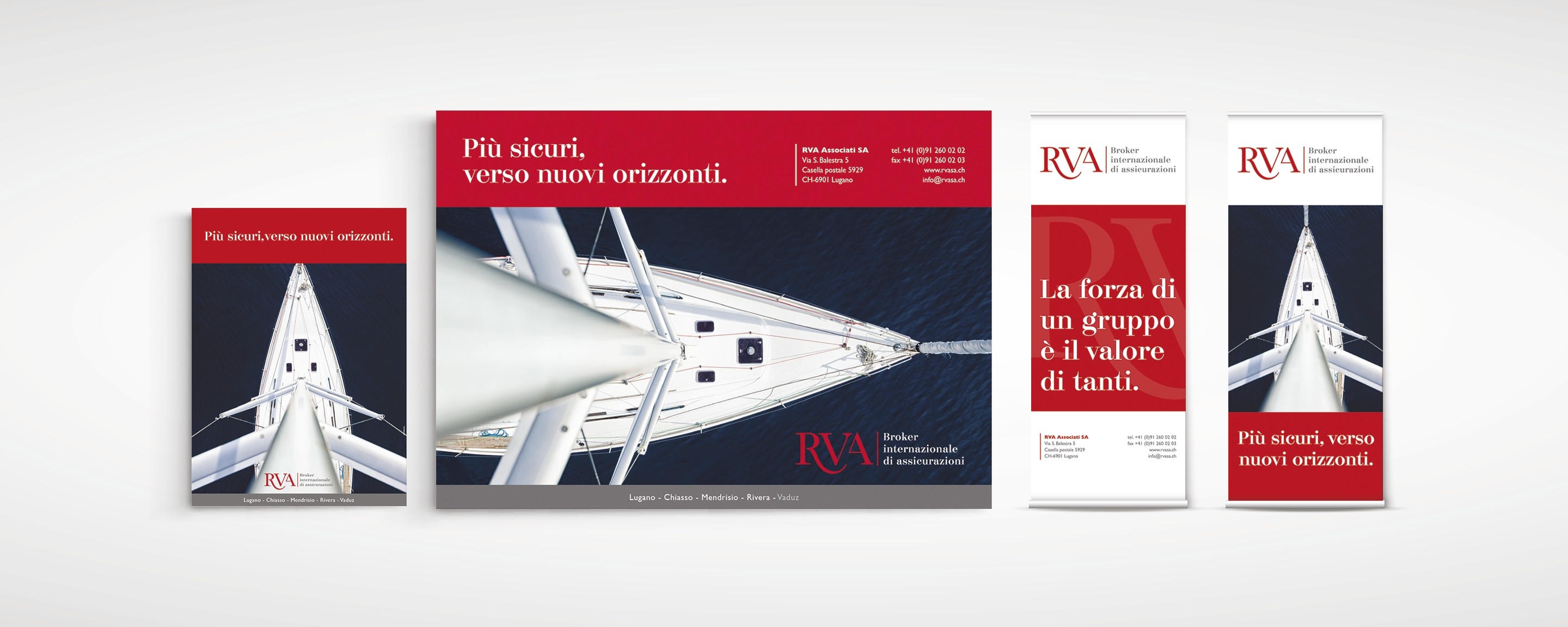 RVA, broker internazionale di assicurazioni basata in Svizzera ci ha affidato il compito di studiare e sviluppare la loro Corporate Identity.